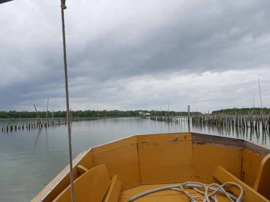 Wir waren sehr beeindruckt von der Fahrt, auch wenn sich das Wetter eher grau präsentierte. Hier war alles sauber und ordentlich. Kein Plastik schwamm im Wasser. Hier wissen sie, wieso man Sorge tragen muss: Es ist ihr tägliches Brot, das ihnen sonst fehlen würde. Es gibt hier unzählige Krebse und Muscheln, die man vom morastigen Grund fischt. Weiter draussen im Meer gibt es Austernfarmen. Es werden wieder Mangroven gepflanzt, da man erkannt hat, dass dies für das Ökosystem wichtig ist.