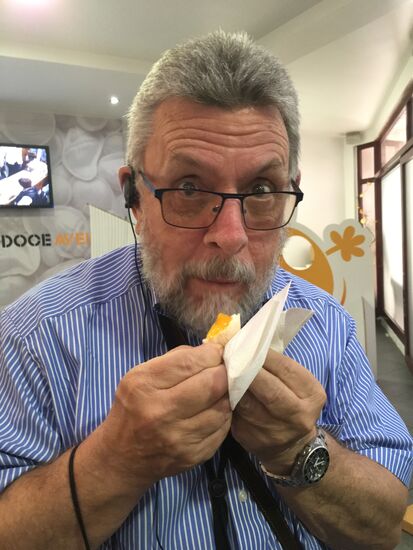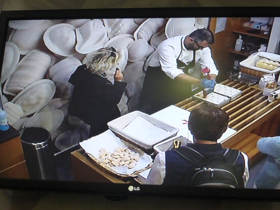 Gemäß Programm machen wir hier die Besichtigung einer Süßwarenfabrik, in der aus Eigelb, Zucker und Wasser durch Kochen eine Creme hergestellt wird, die anschließend in einer Art Oblate eingeschlossen wird und als Süßigkeit verkauft wird. (Oves Moles) Man führt uns die Herstellung vor und es gibt natürlich eine Probe.