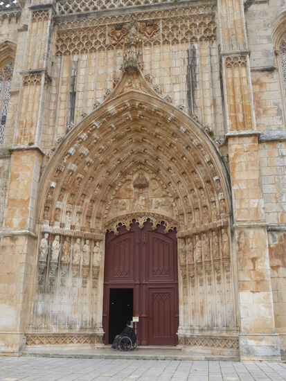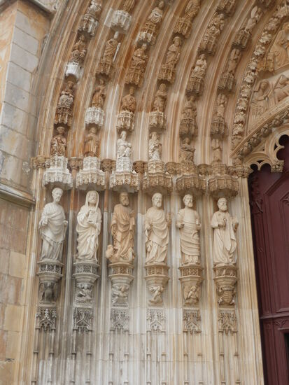 Die monumentale, dreigeteilte Hauptfassade mit dem Portal ist ein großartiges Beispiel für die Gotik in Portugal. Das Portal ist mit einer Fülle von Steinskulpturen geschmückt.