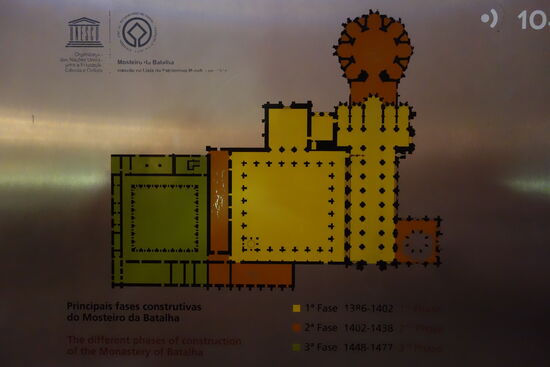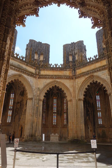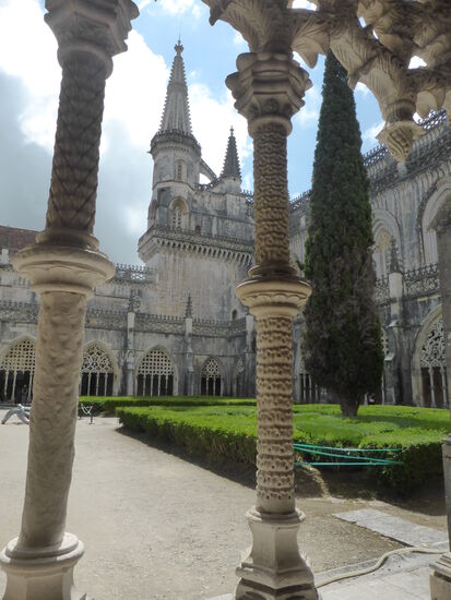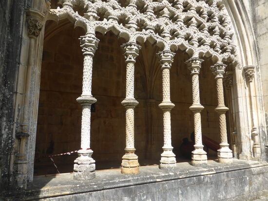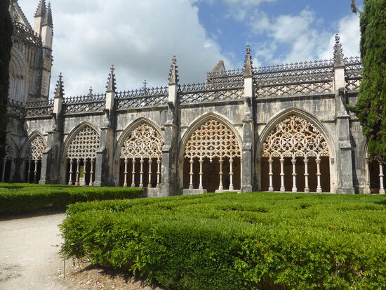 Die Klosterkirche von Betalha ist ein recht großer Komplex mit einer sehr schlichten gotischen Kirche, an die im Laufe der Jahrhunderte zwei fantastische Kreuzgänge, ein Refektorium und eine sogenannte unvollendete Kapelle angebaut wurden. Ist der erste Kreuzgang noch reich verziert mit abwechselnd verschieden ausgearbeiteten Bögen, in denen jeweils unterschiedliche Säulen eingestellt sind, so ist der zweite Kreuzgang als zweistöckiger recht einfach gehalten. Die unvollendete Kapelle ist wieder toll ausgearbeitet, nur fehlt jedoch das Dach.