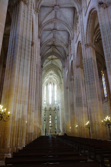 Das prachtvolle Gebäude, ein Meisterwerk gotischer Klosterbaukunst in Europa, erhebt sich mitten im Ort. Schon allein die Ausmaße sind imposant; das Gebäude ist 178 m lang und 137 m breit. König Joäo I. betraute 1388 den Dominikanerorden mit der Errichtung der Klosteranlage, die von dem portugiesischen Baumeister Afonso Domingues bis 1402 betreut wurde.