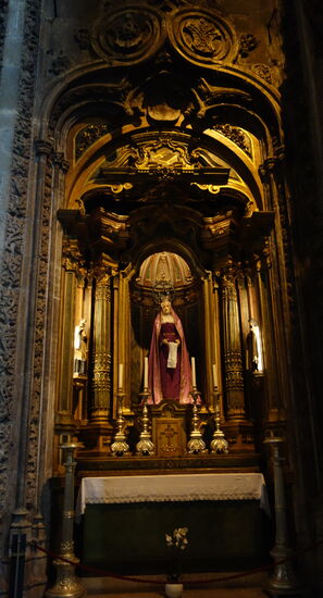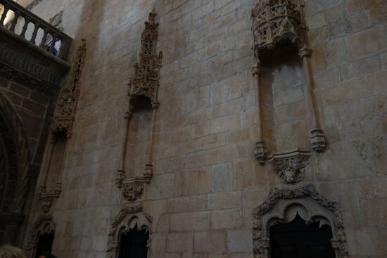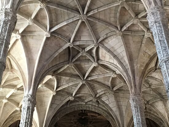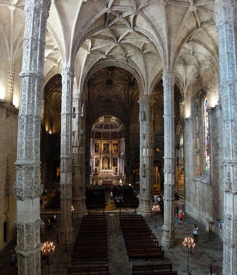 Mit der dreischiffigen Hallenkirche schuf der Architekt João de Castilho einen der schönsten und ungewöhnlichsten Innenräume Portugals. Aus sechs schlanken Säulen öffnen sich die Rippen wie Palmwedel, um das Netzgewölbe in 25 m Höhe zu tragen. Das Gewölbe mit solch schlanken Bauteilen sicher zu halten ist auch eine statische Meisterleistung, die Halle ist immerhin 90 m lang und 27 m breit. Die vier stärkeren Vierungspfeiler sorgen dafür, dass das Querhaus von 29 x 19 m Größe ohne weitere Stützen auskommt. Durch ihre reiche Gestaltung wirken die Säulen fast schwerelos und ohne tragende Funktion. So grazil diese Konstruktion auch erscheinen mag, sie hat bislang nicht nur annähernd 500 Jahre überdauert, sondern auch das schwere Erdbeben von 1755, das nur wenige Kilometer entfernt ganze Stadtteile in Schutt und Asche gelegt hat. (Wikipedia)