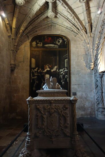 Im Eingangsbereich unmittelbar unterhalb des kleinen Chors befinden sich die Sarkophage des Dichters Luís de Camões, dem Autor des Nationalepos. Die Lusiaden, und des Seefahrers Vasco da Gama, dem Kommandanten der Schiffe, die im Jahre 1497 erstmalig in der Geschichte den Seeweg nach Indien bestritten.