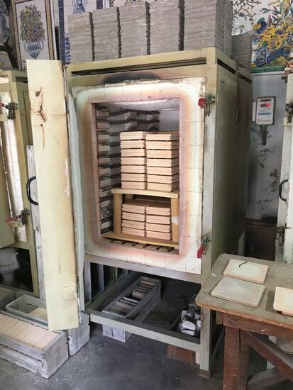 Eigentlich fanden wir den Besuch einer Keramikwerkstatt nicht als sehenswerten Programmpunkt. Doch es stellt sich heraus, dass die Erläuterungen und Vorführungen recht ergiebig und interessant sind. So z.B. dass der Ton nach dem ersten Brand monatelang trocknen muß, bevor er mit Glaspulver bestreut und anschließend bemalt wird. Interessant auch, dass beim zweiten Brand die Farben auf die Kachel sinken und das Glaspulver oben den Glanz erzeugt.