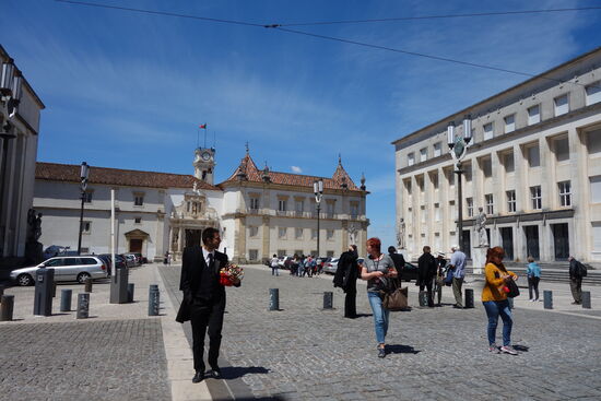Von dem großen Platz hat man einen guten Überblick über die Stadt Coimbra; beim Studium des Reiseführers fiel mir auf, dass es auf der anderen Seite des Mondego noch ein altes Kloster geben muß: Santa Clara. Dieses ist von hier in der Ferne auszumachen