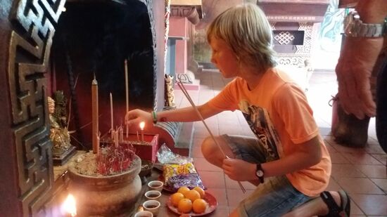 ...und noch ein Besuch in einem chinesischen Tempel... traditionsbedingter Prüfungsbeistand (für Insider). Und ein Opi, der die Stäbe mit Raphael in einem ganz bestimmten System verteilte. Auch wieder so eine Begegnung.