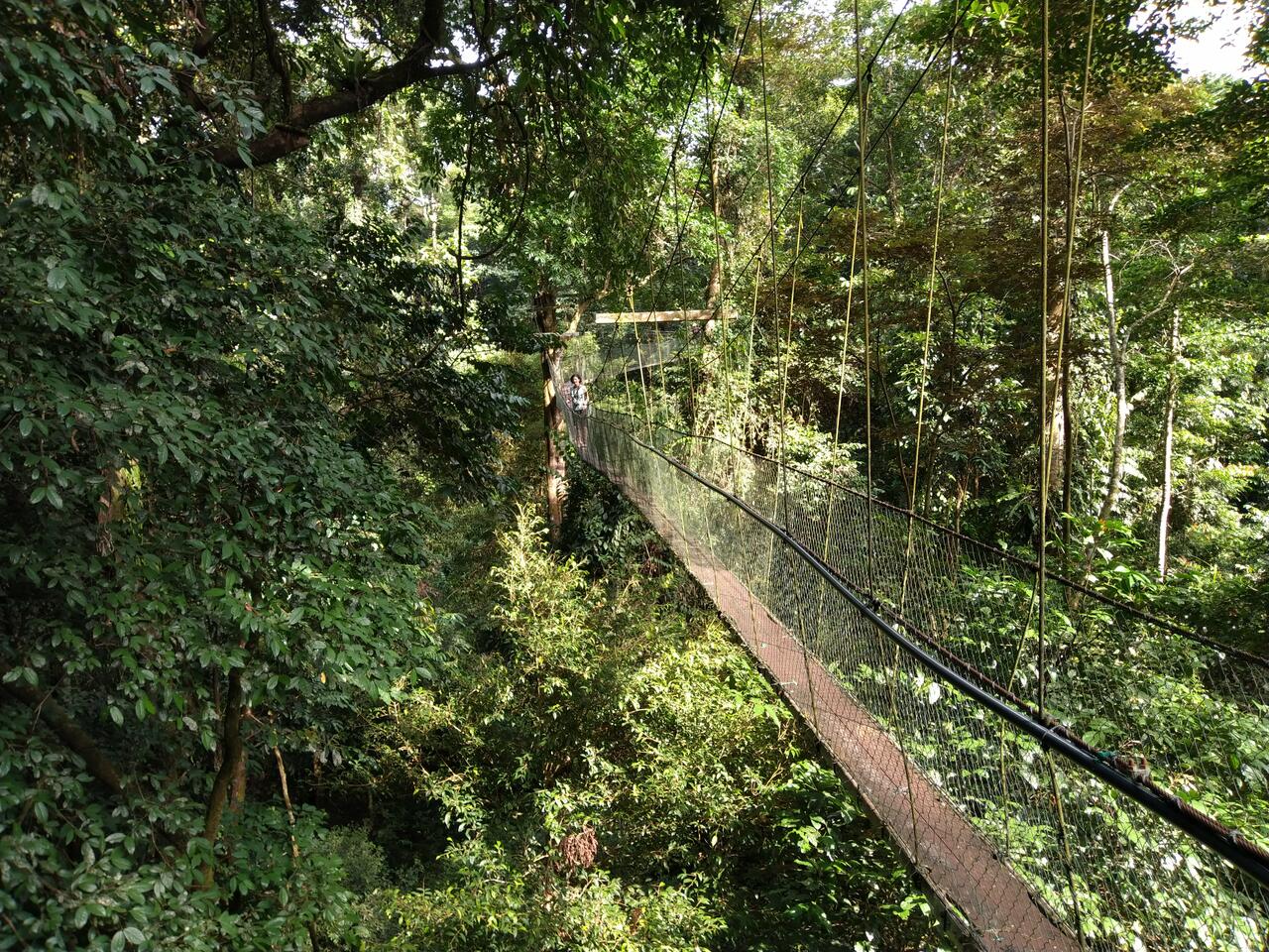 Canopy walkway. Ca. 30 min vom Headquarter entfernt. 480 m langer Rundkurs durch die Baumkronen und über den Fluss mit schönen Ausblicken. 20-30 m hoch. . Auf jeden Fall schön und für die, die das erste Mal solch eine Chance haben, eigentlich Pflicht. Ansonsten eine Möglichkeit