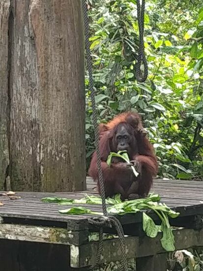 Der begehbare Teil des Gebiete ist recht klein und besteht aus Plankenwegen zu einer Fütterungsplattform und dem Weg zum Affenkindergarten, den man aber nur aus einem Besucherzentrum durchs Glas sieht. An der Plattform waren am Morgen vllt 150 Besucher.. Das gebrachte Futter lockte aber nur einen einzigen Affen an, das war wohl der Quotenaffe vom Dienst. Wir waren mit mehr Erwartungen hierhergekommen. Die Tickets gelten für den ganzen Tag, also am Nachmittag sollte ein zweiter Versuch folgen.