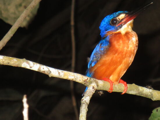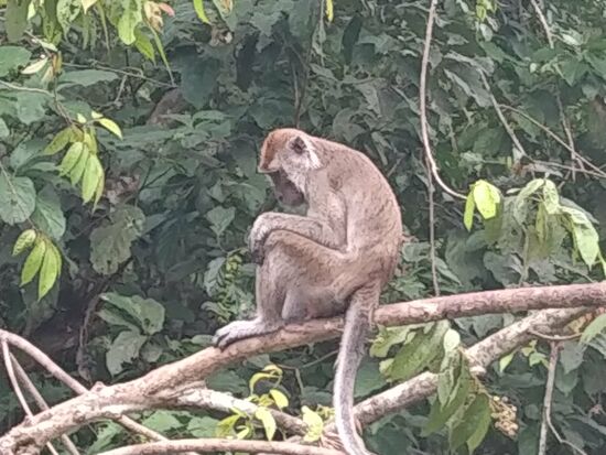 An der 16-uhr Tour nahmen so etwa 20 Leute auf 2 Booten teil. Endlich wirkliche Natur wie erwartet. Die Ausbeute ist noch steigerungsfähig, verschiedene Affenarten, Nashornvogel und bei der Nachttour später weitere dann schlafende Vogelarten, ein Babykrokodil, das abtauchte... Morgen früh 6 Uhr gehts erneut auf Tour, noch vorm Frühstück.