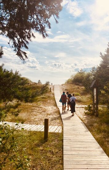 Palanga ist echt ein schöner Ferienort, einer der schönsten und renommiertesten Badeorte am Mare Baltikum. Der vielseitig Ort wird auch als Sommerhauptstadt des Landes bezeichnet. Die Strandzugänge sind per Holzsteg zu erreichen. Alles sehr gepflegt. Allerdings sind uns das dann doch zu viele Menschen und wir sind froh den Rückweg antreten zu können und wieder zu unserem fast einsamen Strand zurückzukehren.