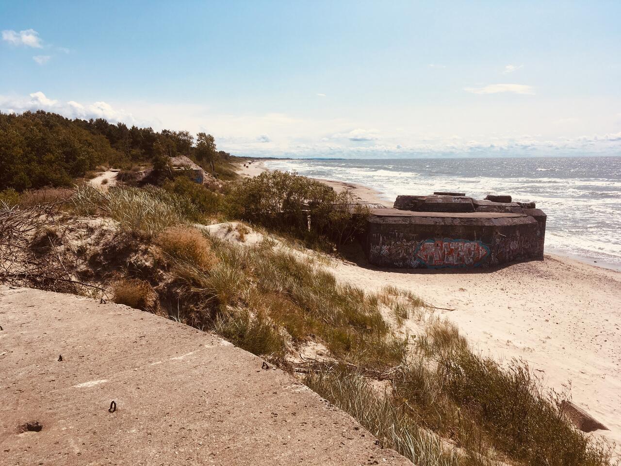 Der Bunker bzw. Munitionslager von Provisionszone der Artillerieeinheit des Strandes Klaipeda Memel-Nord. Ein typischer Bunker von der Eisenbeton-Konstruktion, oben ist ein künstlicher Erdendamm formiert worden.