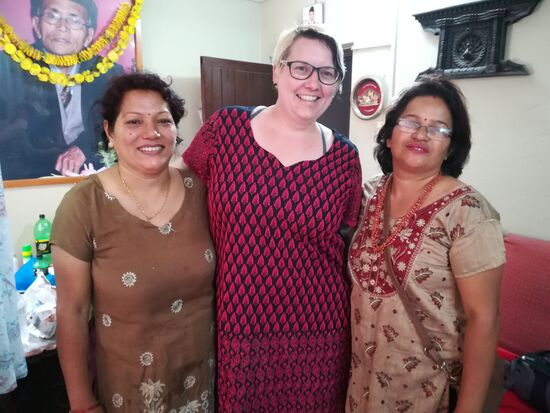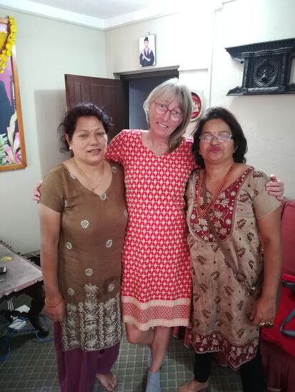 Die Kurt Surval ist fertig und wir sind zur Anprobe verabredet. Manika die Besitzerin von dem Guesthouse, in dem wir vor ein paar Tagen übernachtet haben, geht mit uns zu ihrer Schwester zur Anprobe. Alles passt gut! Wir freuen uns!