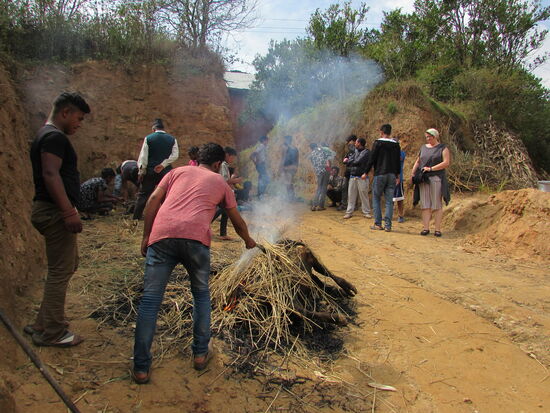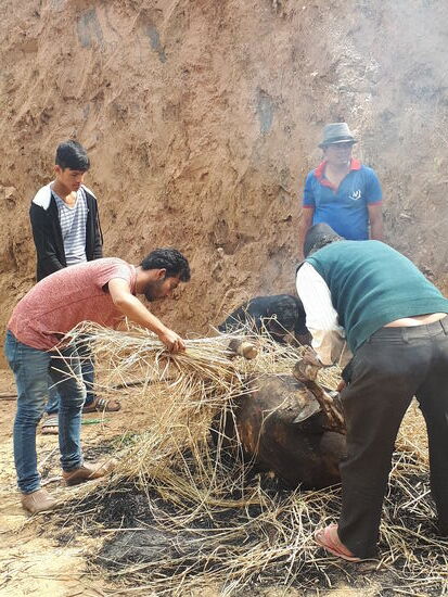 Als wir ankommen liegt das Rind schon im Feuer. Da es an Geld fehlt, wurde es auf Kredit gekauft.