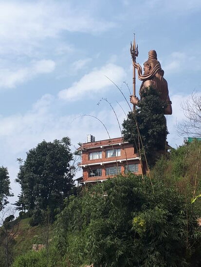 Auf dem Weg nach Banepa schauen wir uns heute endlich die Statue von Shiva ganz aus der Nähe an, beim vorbei fahren hatten wir sie schon öfters da weit Oben am Hang gesehen.