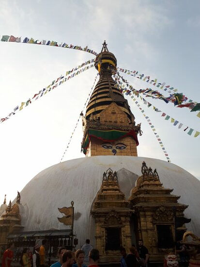 Am Nachmittag beschließen wir spontan noch die Swayambhunath Tempel zu besuchen und so geht es nach einem Mittagessen bei FulMaya's Schwester zu dieser Tempelanlage.
