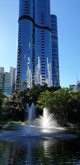 Der Brisbane River fliesst mittendurch und am Ufer entlang gibt es viele Spazierwege, eine Promenade mit gemütlichen Cafés und einem Sandstrand mit Blick auf die Skyline.