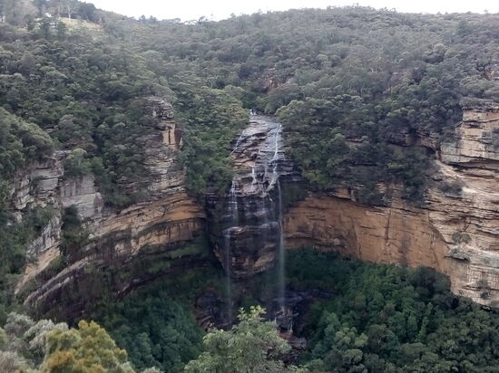 Entlang dieser Steilklippen reiht sich ein fantastischer Ausblick an den anderen. Und dann kann ich auch schon von weitem die Wentworth Falls erkennen. Weil die imposanten, schier unendlich tiefen Wentworth Falls noch nicht einmal vertikal auf Fotos passen.