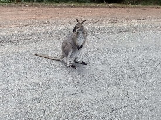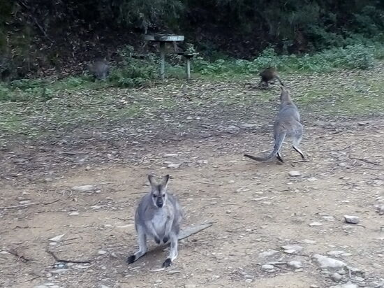 Diese Wallabies haben wahrscheinlich den Picnic Platz als zu Hause adoptiert, denn sie kamen sofort ohne Scheu angesprungen und sahen sich ihre Besucher an und Uhhhhhh wie super niedlich.