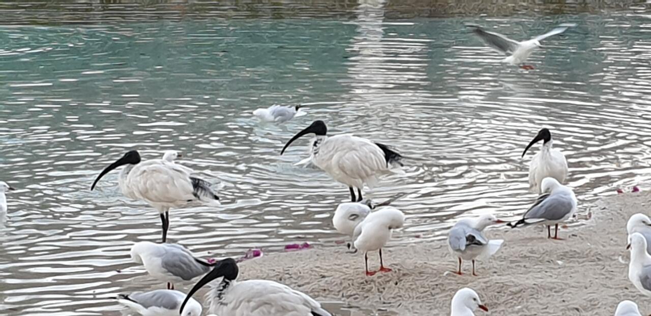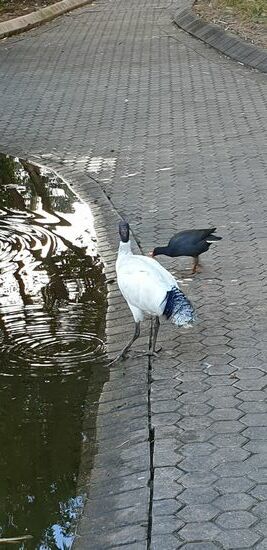 Überall sieht man den überhaupt nicht scheuen Ibis in Brisbane. Ganz besonders in der Nähe von Wasser oder auf Grünflächen. Er lässt sich sehr gut fotografieren und ist interessant anzusehen. Antagonistisches Futterneid Verhalten in Ibis Gruppen ist von Zeit zu Zeit zu erkennen, sie stehlen sich untereinander das Futter.