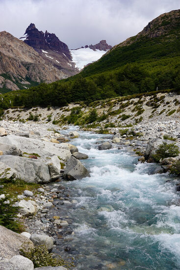 Unsere Strecke verlief heute ohne nennenswerte Steigungen, der Fluss ‚Fitz Roy‘ treu wie ein Hund stets an unserer Seite. Wir hatten im Übrigen darauf verzichtet, neues Trinkwasser einzukaufen, nachdem es uns von allen Bächen hier in Hülle und Fülle angeboten ward und einfach herrlich schmeckte.