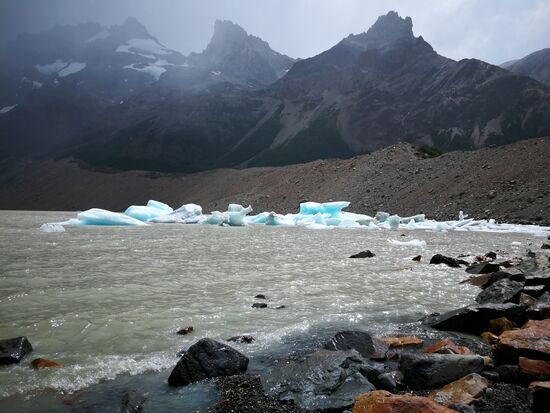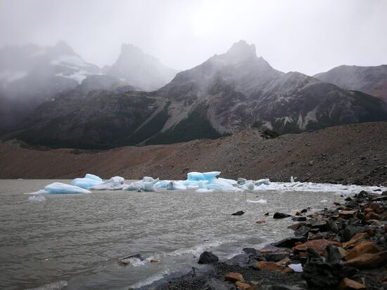 Wir wurden für unsere Wanderung, die sich im Vergleich zur gestrigen Kraxeltour insgesamt recht gemütlich gestaltete, belohnt mit einem zauberhaften Blick in die verwunschene-graue Laguna Torres, in der, zwischen gespenstischen Nebelschwaden, kleine strahlend blaue Eisberge schwammen.