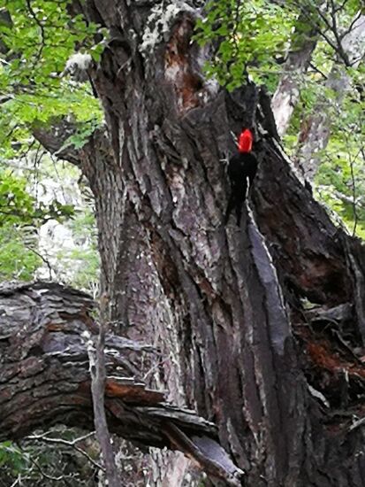 erfreute uns ein Pärchen Magellanspechte, welches voller Neugier recht nahe herangekommen war. Vor allem der knallrot leuchtende Kopf des Männchens zog uns, und im Laufe der Zeit noch eine ganze Schar weiterer Besucher, in seinen Bann. Das Interesse war durchaus gegenseitig, es schien, dass die Vögel geradewegs ein kleines Trommelkonzert hier für uns veranstalteten.