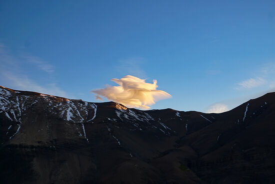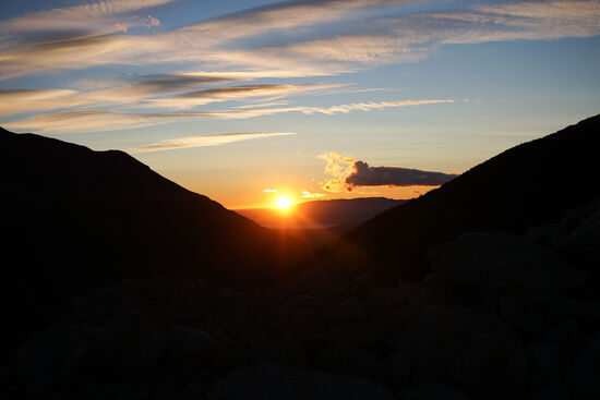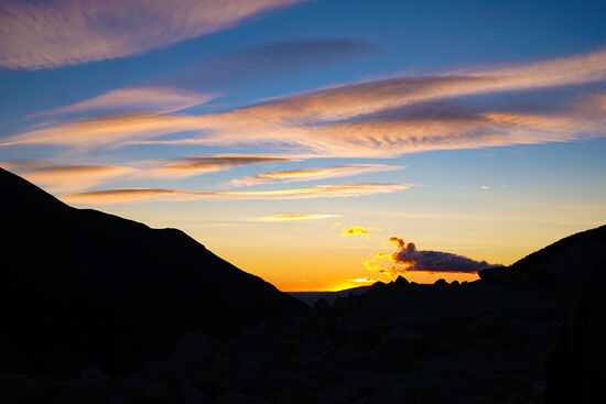 Gelegentlich verlief man sich auch, bis man wieder Wegweiser entdeckt hatte, der stürmische Wind tat sein Werk im Übrigen. Himmel und Berge ringsum waren mittlerweile in zartes Rosa getaucht, eines der Wölkchen erinnerte täuschend echt an ein fluffiges Sahnebaiser! Oder halluzinierten wir gar schon?!