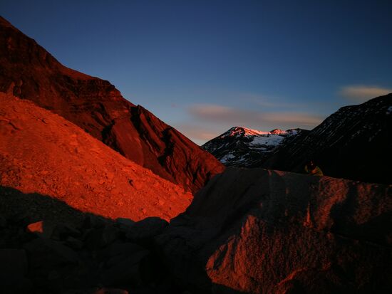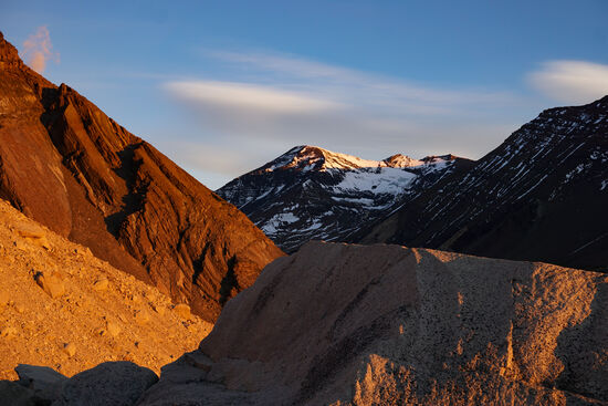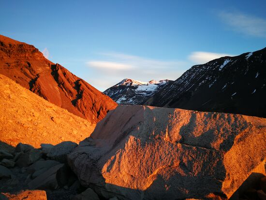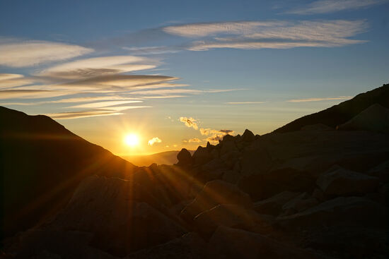 Dennoch konnten wir uns nicht sattsehen an dem prachtvollen Schauspiel ringsum, als die langsam aufgehende Sonne nacheinander Berg für Berg, Fels für Fels, allmählich erleuchtete.
