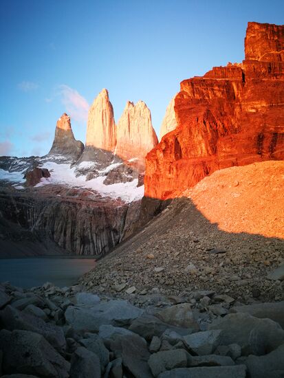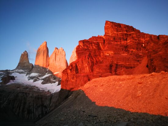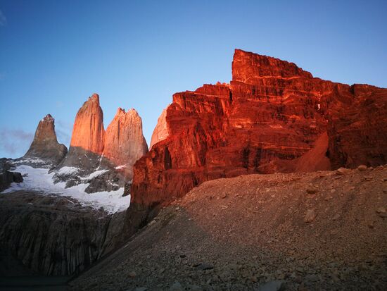 Zentimeter für Zentimeter tauchten sie die Torres in feuerrotes Licht.