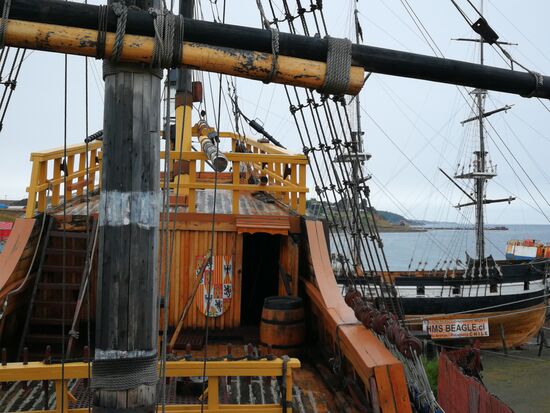 Und so durften wir hier ebenso auch die nicht minder detailverliebte begehbare Replik der 1831 mit Robert FitzRoy und Charles Darwin zur großen Expedition aufgebrochenen HMS Beagle bewundern.