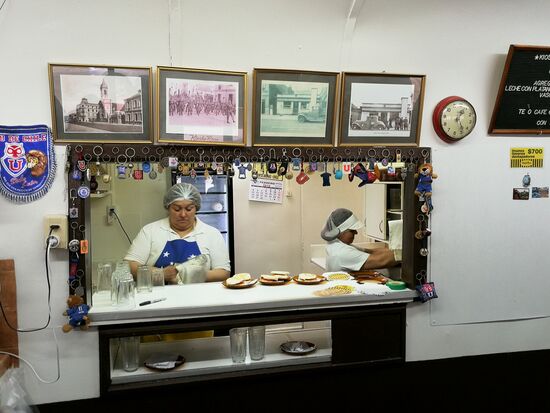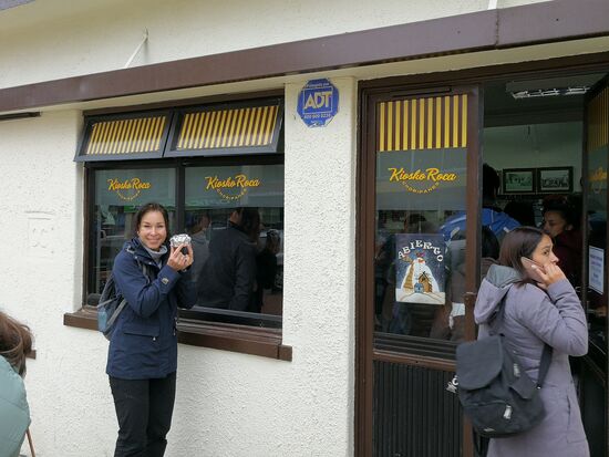Als der Besuchersturm einmal nicht so hoch war, setzten wir selbst einen neugierigen Fuß hinein. Des Rätsels Lösung waren Choripanes, kleine Teigküchlein, die, gefüllt mit Fleischmasse, Käse oder beidem, hier frisch gebacken und äußerst günstig, für 500 – 600 Pesos (rd. 70 – 80 Cent), verkauft wurden. Und zwar NUR diese! Das Konzept ist denkbar einfach und scheint aufzugehen, der Laden war immer brechend voll. Die Dinger stellten sich auch als ziemlich lecker heraus, wenn wir uns dafür nun auch nicht unbedingt in eine Schlange gestellt hätten. Und warum die Menschen hier alle Milch dazu tranken, war uns auch nicht recht klar.