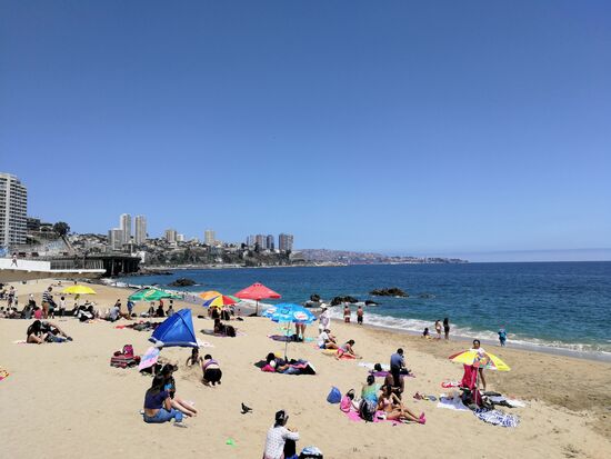 Von den kleinen Strandbars ringsum gut mit leckeren Churros (einem frittierten Gebäck) und ein paar Dosen guten chilenischen Bieres versorgt, dazu ein angenehmes Lüftchen ... so konnte man es am Strand prima aushalten.