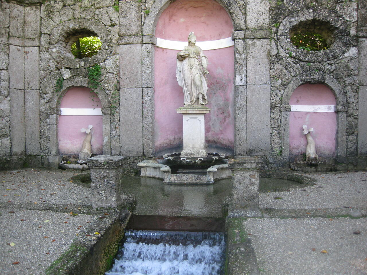 Die Wasserspiele mit den geheimnisvollen Grotten, wasserbetriebenen Figurenspielen und überraschenden Wasserspritzern begeistern schon seit 400 Jahren. Auf der gesamten Schlossanlage gibt es Brunnen, Grotten und Skulpturen, wo mit versteckten Düsen, Röhren und Kanälen Waser fliesst, sprüht oder spritzt.