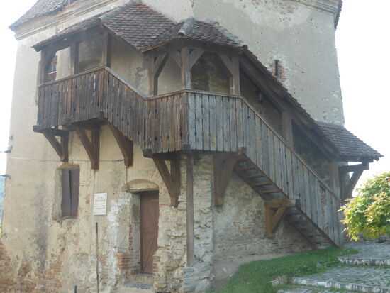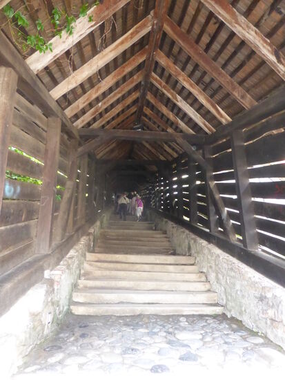 Dann steigen wir über einen doppelt so langen überdachten Holztreppenweg - konstruiert im jahre 1642 - wie in Biertan zur Bergkirche.