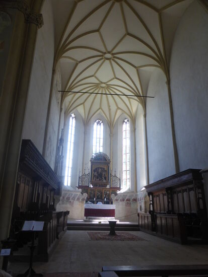 DasChorgestühl (1523) wurde in einer bekannten Werkstadt für Renaissance-Möbelstücke in Schäßburg hergesteilt. Diese gehörte Johannes" Reychmut An der Westseite der Kirche sind Grabsteine aus den Jahren 1500-1650 aufbewahrt, die wertvollsten sind die von Georgius Heltner (1640) und Stefan Mann (1647), ein Werk des hermannstädter Meisters Elias Nicolai.