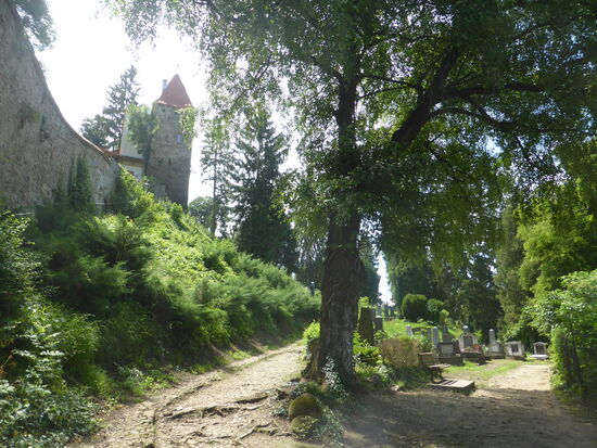 An die Kirche schließt sich der Friedhof an. Zwischen ihm und der Kirche steht der Seilerturm - Turnul Fränghierilor - der einzige bewohnte Turm in der Stadtmauer. In ihm wohnt der Friedhofswärter