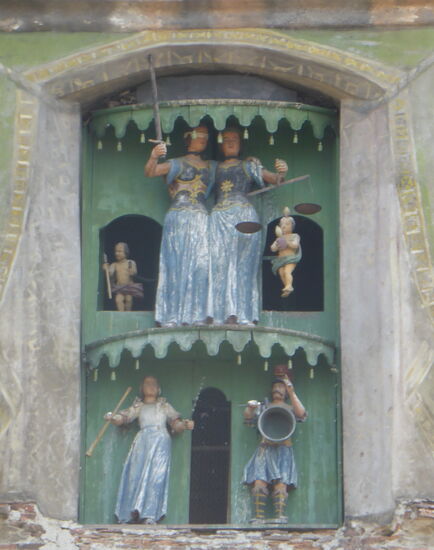 Eine weitere Besonderheit ist das im vierten Stockwerk eingebaute Uhrwerk, es wurde mechanisch mit einem Figurenspiel verkoppelt, das den Stunden- und Tageswechsel begleitet und als einzigartig in Rumänien gilt.[