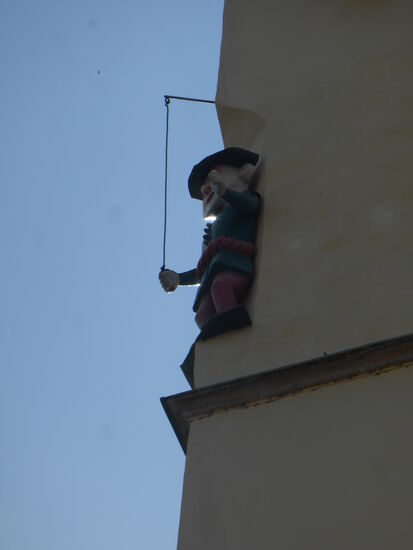 Am Turm ist an einer Ecke der Trompeter zu erkennen.