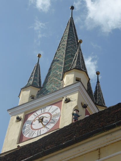 wie in Sighisoara weisen auch hier die vier Ecktürmchen auf die Hochgerichtsbarkeit hin, d. h., die junge Stadt Mediasch konnte Todesurteile aussprechen und vollstrecken.