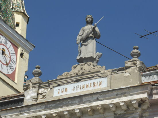 Auf dem Rückweg fallen weitere interessante Gebäude auf - darunter auch eines, das auf die Tuchindustrie dieses Ortes hinweist.