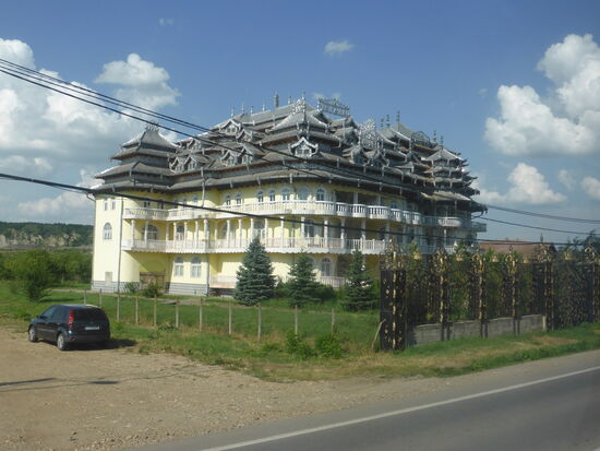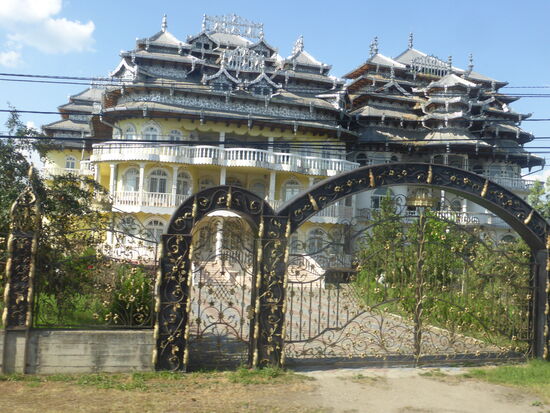Auf der Rückfahrt macht uns Elke dann auf eine Besonderheit aufmerksam: Wir fahren durch ein Zigeunerdorf. Woher die Finanzen für die dort zu findenden Prachtbauten stammen, bleibt dabei offen. Zum Teil sind sie noch in Bau.
