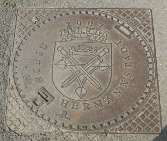 Der kunstvolle Kanaldeckel stammt aus dem Jahr, in dem Sibiu Europäische Kulturhauptstadt war. Dies ist wohl auch der Grund für den enormen Aufschwung der Stadt, der sich u.a. in der fast vollständigen Sanierung der Altstadt darstellt.