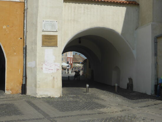 Durch den Ratturm gelangt man zur/zum Piatå Micå (Kleiner Ring). dem einstigen Marktplatz der Handwerker, umrahmt von deren Wohnhäusern und prächtigen Häusern der Zünfte.