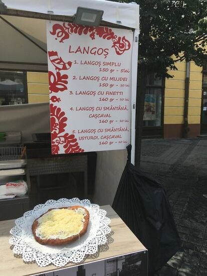 Für den Rückweg wählen wir die Fußgängerzone mit zahlreichen schönen Fassaden, Ulrike findet eine interessante Bäckerei; dort gibt es Gogoasa zu 4 Lei mit Schinken, Käse oder auch Schokolade. Wir probieren einen – er ist noch warm (Elke sagt es ist ein Krapfen).