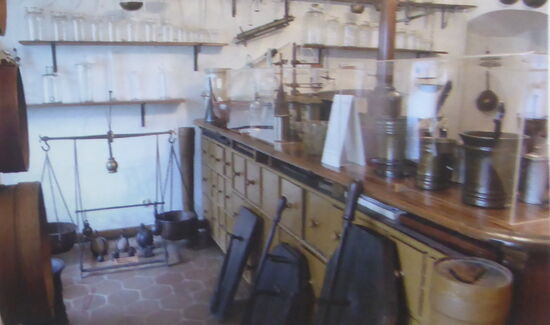 Unter den Gerätschaften, die zur Vorbereitung von Medikamenten benutzt wurden, ragt ein Bronzemörser aus dem Jahre 1597 hervor. Es handelt sich um den ältesten Gegenstand der Sammlung.