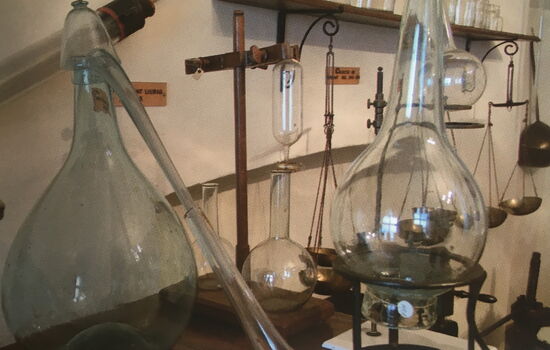 Die ausgestellten Gegenstände - pharmazeutische Gefäße aus Holz, Keramik, Fayence, Glas, Mörser aus Bronze und Gusseisen, Waagen und Wiener Apothekergewicht» - illustrieren sowohl Art und Form der Medikamentation über die Jahrhunderte hinweg als auch die Entwicklung der pharmazeutischen Instrumente.
