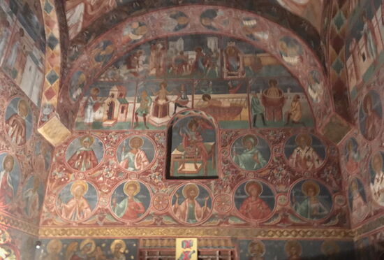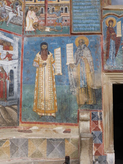 Westfassade - der Vorbau im Jahre 1547. bemalt - dDie Vorhalle wurde 1550, unter der Schirmherrschaft des Metropoliten Teofan, vergoldet.