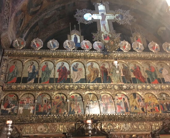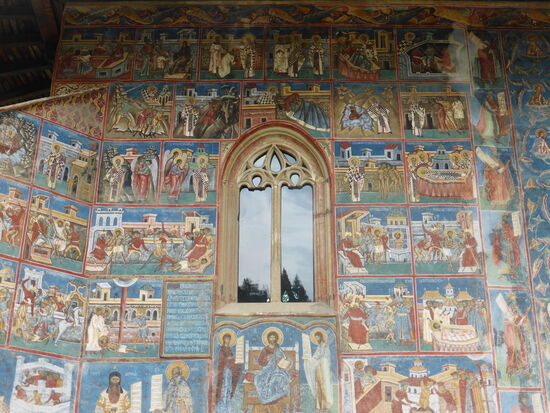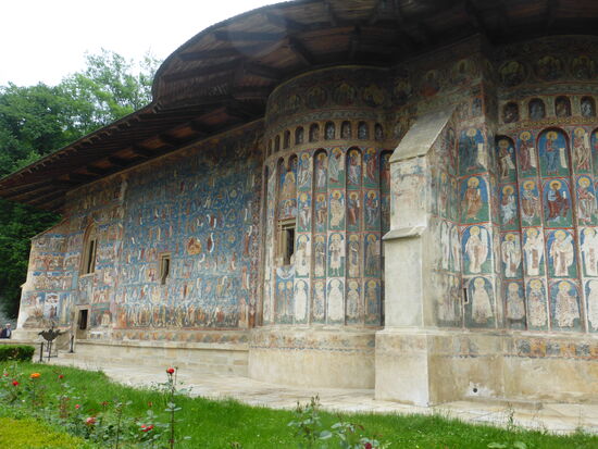 Aber nach der Ankunft am Kloster Voronet hält sich das Wetter trocken. Durch eine Basarstrecke geht es zum Eingang wo man 10 Lei für Außenfotogafieren kassiert. Innen darf man gar nicht – drei habe ich trotzdem gemacht.