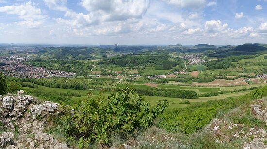 Nicht spektakulär aber schön, schön, schön. Kann einem schon das Herz aufgehen bei der Sicht auf die drei Kaiserberge. Wir haben ehrlich gesagt den Albtrauf auch mal parallel liegen lassen, wenn wir mal ein bisschen freien Blick in die Landschaft brauchten – Albtrauf ist halt viel durch den Wald.