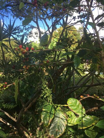 Allerdings blühen überall Blumen. Von Kaffeesträuchern bis Kakteen ist alles dabei.